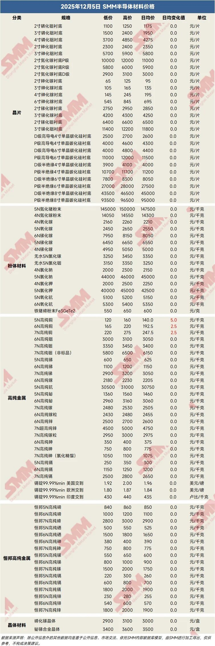 > 12.5:半导体材料价格(晶片、粉体材料、高纯金属)